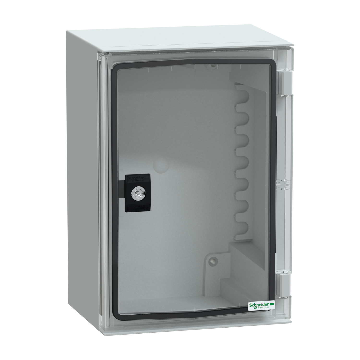 Wall cabinet in monobloc construction made of ABS/PC. The cabinet has an integrated rain cover and is therefore ideal for outdoor use.