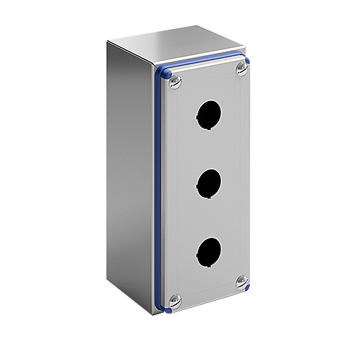 Le boîtier de l'interrupteur en acier inoxydable est spécialement conçu pour être utilisé dans des environnements où les normes d'hygiène sont strictes et où le nettoyage est facile grâce à un profil bien pensé. Ils disposent d'un couvercle vissé avec un joint en silicone développé selon les exigences de l'autorité FDA et certifié UL. Le couvercle est percé de trous de Ø 22,5 mm. Le boîtier est livré sans plaque de montage.